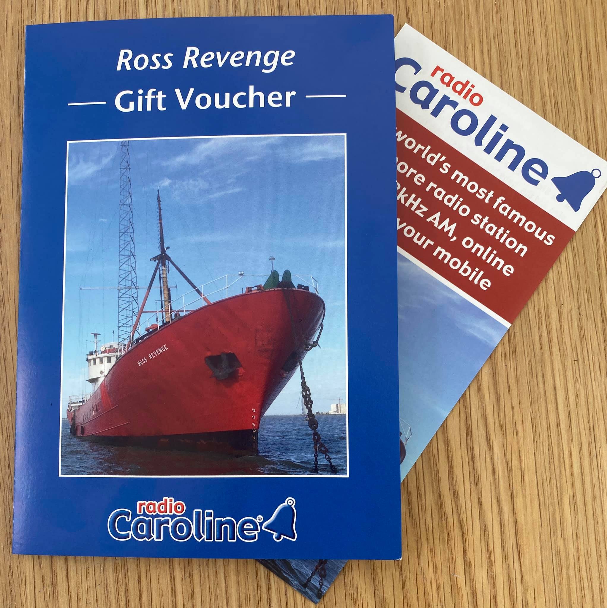 Voucher for 2 to visit Radio Caroline radio ship Ross Revenge during Caroline Community Radio live broadcast 9/10 Oct. To enter email name/address/tel to hello@carolinecommunityradio.co.uk by 11.59 Friday 24 Sept. Full info on Facebook pg: